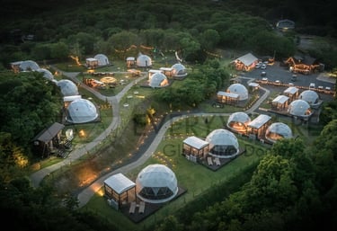 Experience eco-luxury at our stunning lakeside resort, offering immersive recreation and unique dining in geodesic domes surrounded by nature.